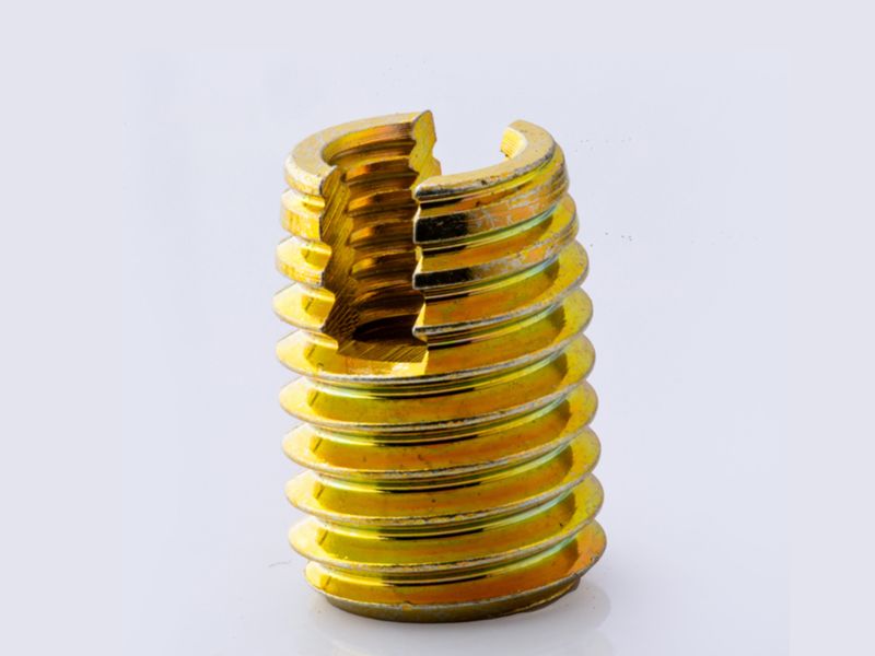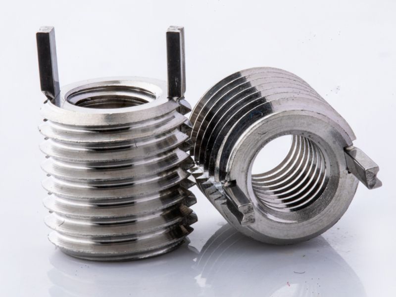 自攻螺套(或稱自攻襯套)是一種帶有內(nèi)外螺紋以及切削孔或切削槽的緊固件。其不必預(yù)先攻螺牙,可直接旋入母材形成螺紋面,對(duì)于已潰牙的螺紋也能維持原尺寸。自攻螺套用于輕合金(鋁、鎂、鋅及其合金)、鑄鐵、黃銅 / 青銅、熱固性塑膠和層壓板、木頭。主要用于汽車的引擎、傳動(dòng)部件以及其他部件如后視鏡、散熱片、減震器等;工廠設(shè)備的法蘭接頭、建設(shè)設(shè)備、燃油設(shè)備等;家用電器和辦公設(shè)備;電容、大電流設(shè)備、射頻以及電信系統(tǒng)、牙科設(shè)備。在軍事上主要應(yīng)用于坦克、戰(zhàn)斗機(jī)、艦艇等。自攻螺套優(yōu)點(diǎn) 自攻螺套具自行攻螺紋能力,母材不必須先攻牙,節(jié)省成本支出。和成品接觸面大,承受拉力強(qiáng),產(chǎn)品設(shè)計(jì)時(shí)可使用較低強(qiáng)度之材料。對(duì)于已磨耗或潰牙之母螺紋具有修護(hù)作用,使用自攻螺套可繼續(xù)使用相同的螺絲。對(duì)振動(dòng)抵抗力強(qiáng),可防止松動(dòng)。與母材無(wú)余隙,母材若含氣泡時(shí)亦有良好的氣密性。 自攻螺套安裝簡(jiǎn)便、迅速,只須一種裝配工具,成本低,幾乎無(wú)不良率。自攻螺套類型 302/302H 型 302 系列產(chǎn)品在所有自攻螺套產(chǎn)品中使用最為廣泛,其兩個(gè)開槽不僅起到切削的作用,并且稍微有點(diǎn)向內(nèi)的鎖緊力。302H 型在 302 型上加了法蘭,可以大大提高拉拔力和扭力。307/308 型307 和 308 系列產(chǎn)品用于難切削的材料,它有更大的壁厚、更淺但是更尖銳的外螺紋,該螺套使用 3 個(gè)孔作為切削刃。308 為 307 的加強(qiáng)型,兩者的區(qū)別僅在于螺套的長(zhǎng)度不同。307H/308H 是加了法蘭的產(chǎn)品。317/318 型317/318 系列產(chǎn)品特別設(shè)計(jì)用來(lái)增加扭力和抗震能力,其功能是通過(guò)插入一根符合 DIN1437 標(biāo)準(zhǔn)的銷軸實(shí)現(xiàn)的。自攻螺套常用材質(zhì)碳鋼適合用于鋁合金、銅合金、塑膠等工程強(qiáng)度較低的基材上;不銹鋼 303適合用于鑄鐵等強(qiáng)度較高的產(chǎn)品上。自攻螺套安裝方法方法一當(dāng)安裝數(shù)量較少時(shí),可采取簡(jiǎn)易安裝方法,具體就是采取對(duì)應(yīng)規(guī)格螺栓 + 螺母的方法,如左圖所示,將自攻螺套固定在對(duì)應(yīng)型號(hào)的螺絲上,用同型號(hào)螺母進(jìn)行固定,使三者成為一個(gè)整體,用扳手把螺套擰入底孔,后把螺絲退出即可。方法二當(dāng)安裝數(shù)量較多時(shí),可用專用螺套安裝工具,具體操作方法參照左圖。圖中工具尾端為一六角頭,可連手動(dòng)攻牙扳手,也可接電動(dòng)或氣動(dòng)工具。步驟一鉆孔或者成型孔,孔徑按照推薦并調(diào)整試驗(yàn)后的尺寸。將自攻螺套旋入手動(dòng)安裝工具,切槽或者切孔朝下,工具的尖端不要超過(guò)孔的上方尖點(diǎn)或者切槽上邊。步驟二將螺套垂直旋入孔中。在初始旋入 1~2 個(gè)牙距的時(shí)候要確認(rèn)是否偏移,有的話即刻退出并重新對(duì)齊。注意不要在自攻過(guò)程中反轉(zhuǎn)安裝工具。步驟三當(dāng)自攻螺套到預(yù)計(jì)深度(螺套上端較工作表面沉下去 0.2mm)后,用六角扳手頂住下方的六角螺母,逆時(shí)針?lè)较蜣D(zhuǎn)動(dòng)以退出安裝工具。安裝注意事項(xiàng)針對(duì)不同的加工材質(zhì),參考鉆孔尺寸規(guī)格,進(jìn)行預(yù)鉆孔加工。當(dāng)對(duì)應(yīng)材質(zhì)硬度較高時(shí),請(qǐng)?jiān)阢@孔范圍內(nèi)稍微加大所開的底孔。將開槽端或三孔無(wú)端朝下,將自攻螺套安全安裝進(jìn)工具前端,垂直接觸工件。裝入時(shí) (1P–2P) 請(qǐng)確認(rèn)對(duì)準(zhǔn)底孔,絕不可傾斜。發(fā)現(xiàn)傾斜時(shí),請(qǐng)不要反轉(zhuǎn)工具并重新調(diào)整使用。當(dāng)進(jìn)入 1/3–1/2 以后,便不可重新再來(lái)。另外,請(qǐng)不要反向旋轉(zhuǎn)工具,否則會(huì)造成產(chǎn)品故障。插入到規(guī)定位置后,用卡板固定工具的六角部,然后反轉(zhuǎn)扳手使工具分離工件。