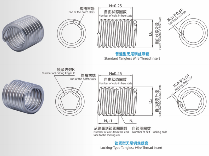 注:鎖緊圈數(shù)及鎖緊邊數(shù)只適用鎖緊型鋼絲螺套